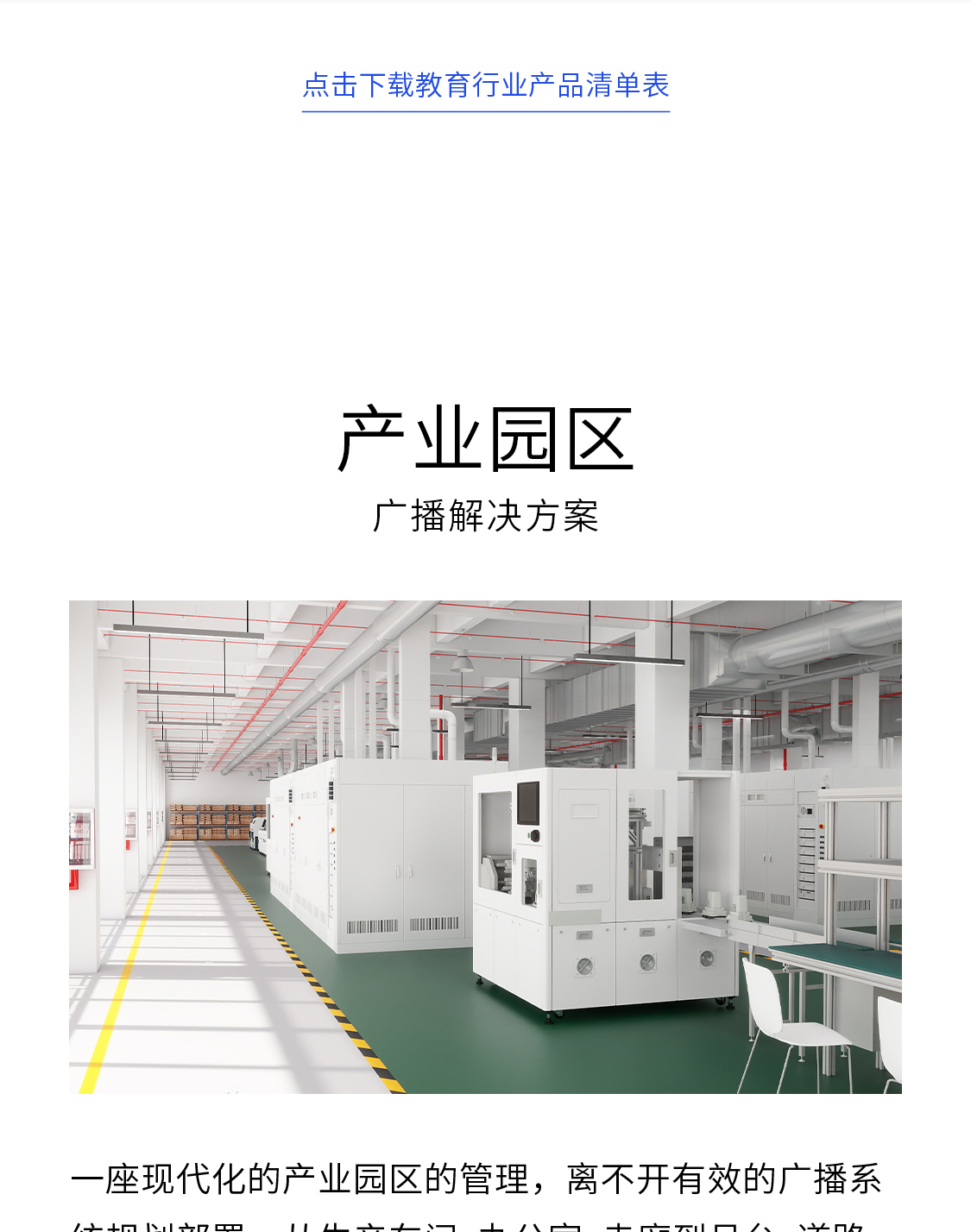 一座现代化的产业园区的管理,离不开有效的广播系统规划部署。从生产车间、