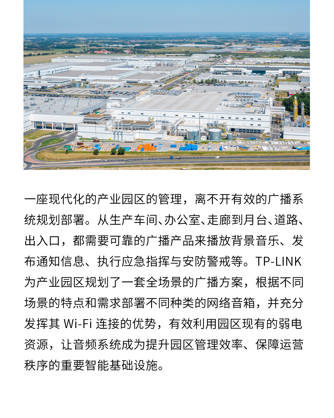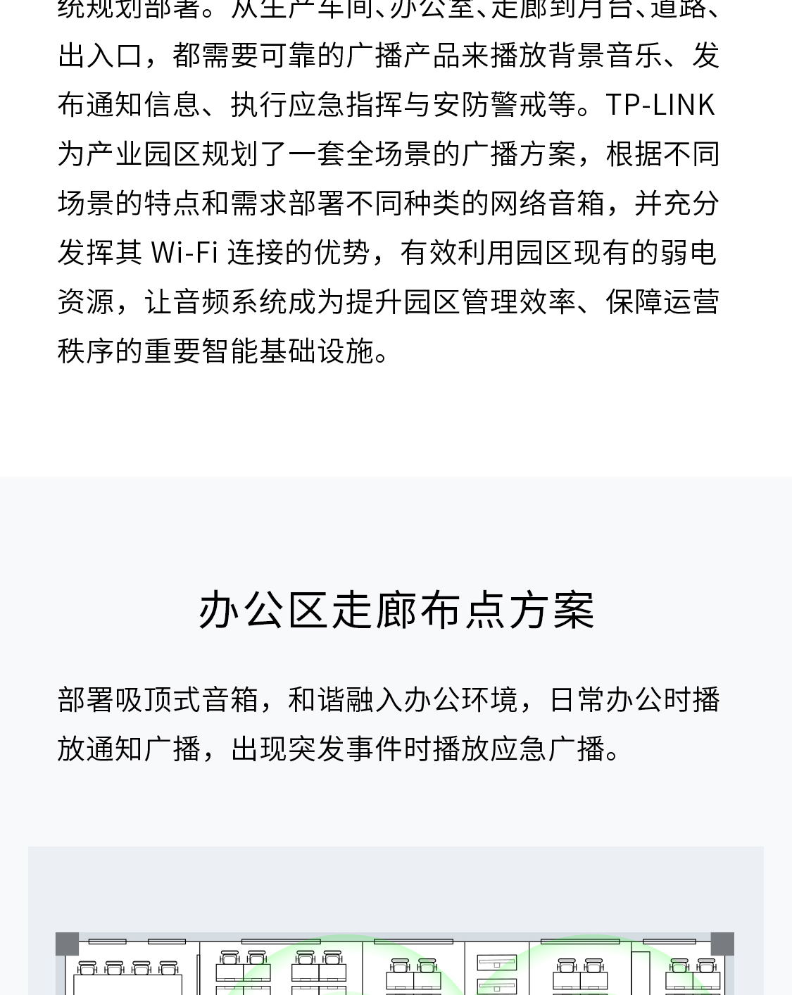TP-LINK为产业园区规划了一套全场景的广播方案,根据不同场景的特点和需