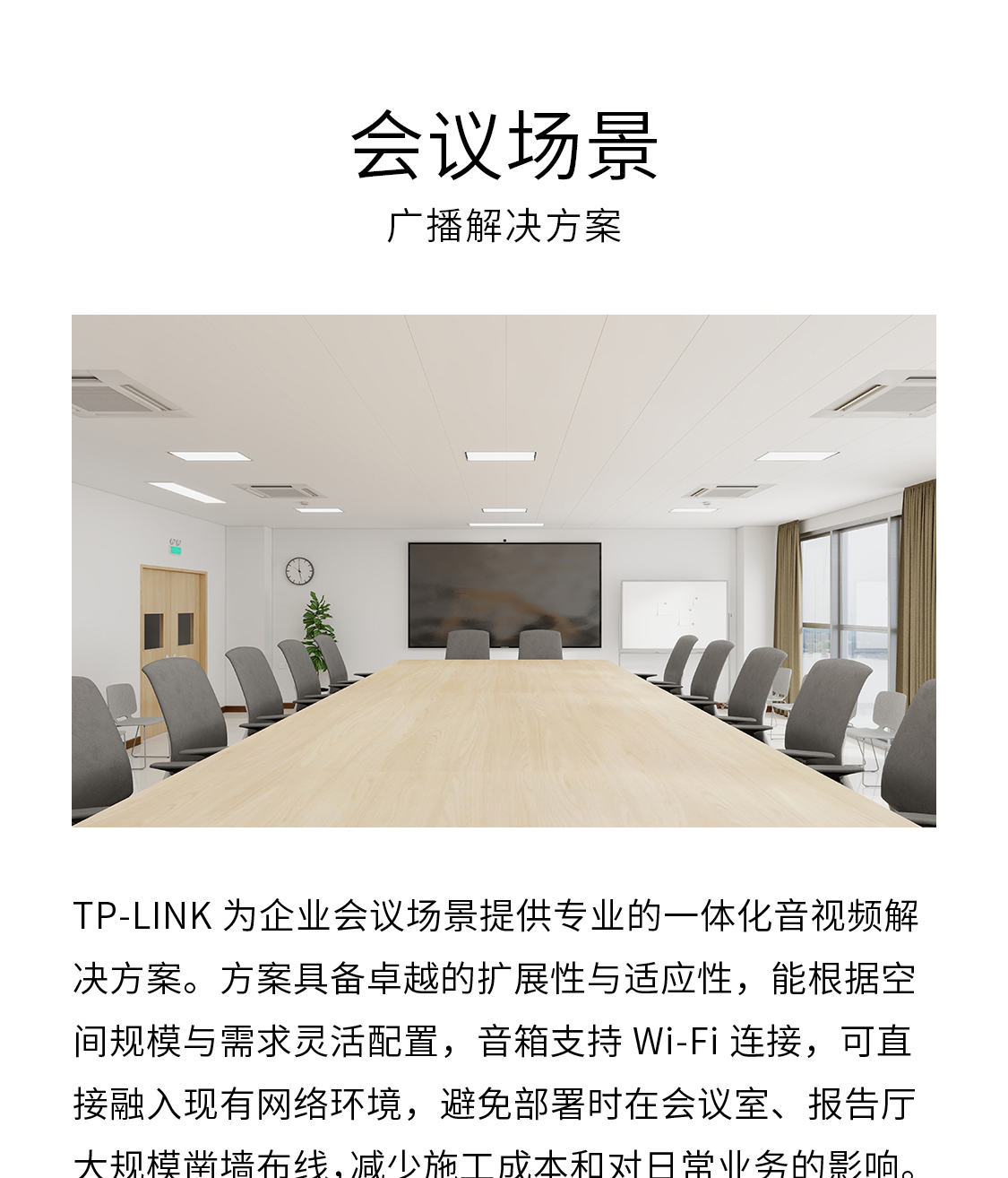TP-LINK为企业会议场景提供专业的一体化音视频解决方案。方案具备卓越的