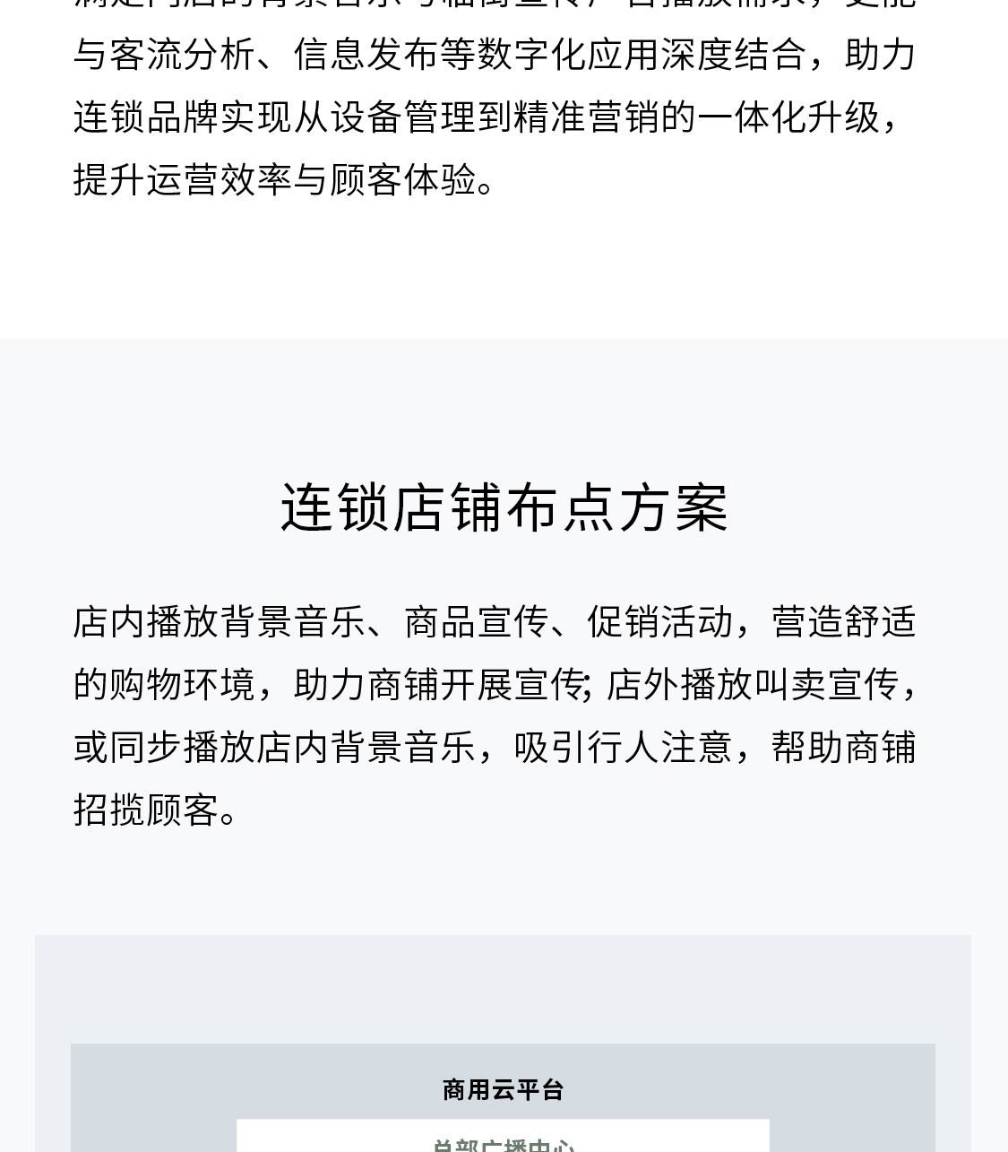 店的音频设备进行集中管理、运维与内容播控,实现标准化管理与高效运营。