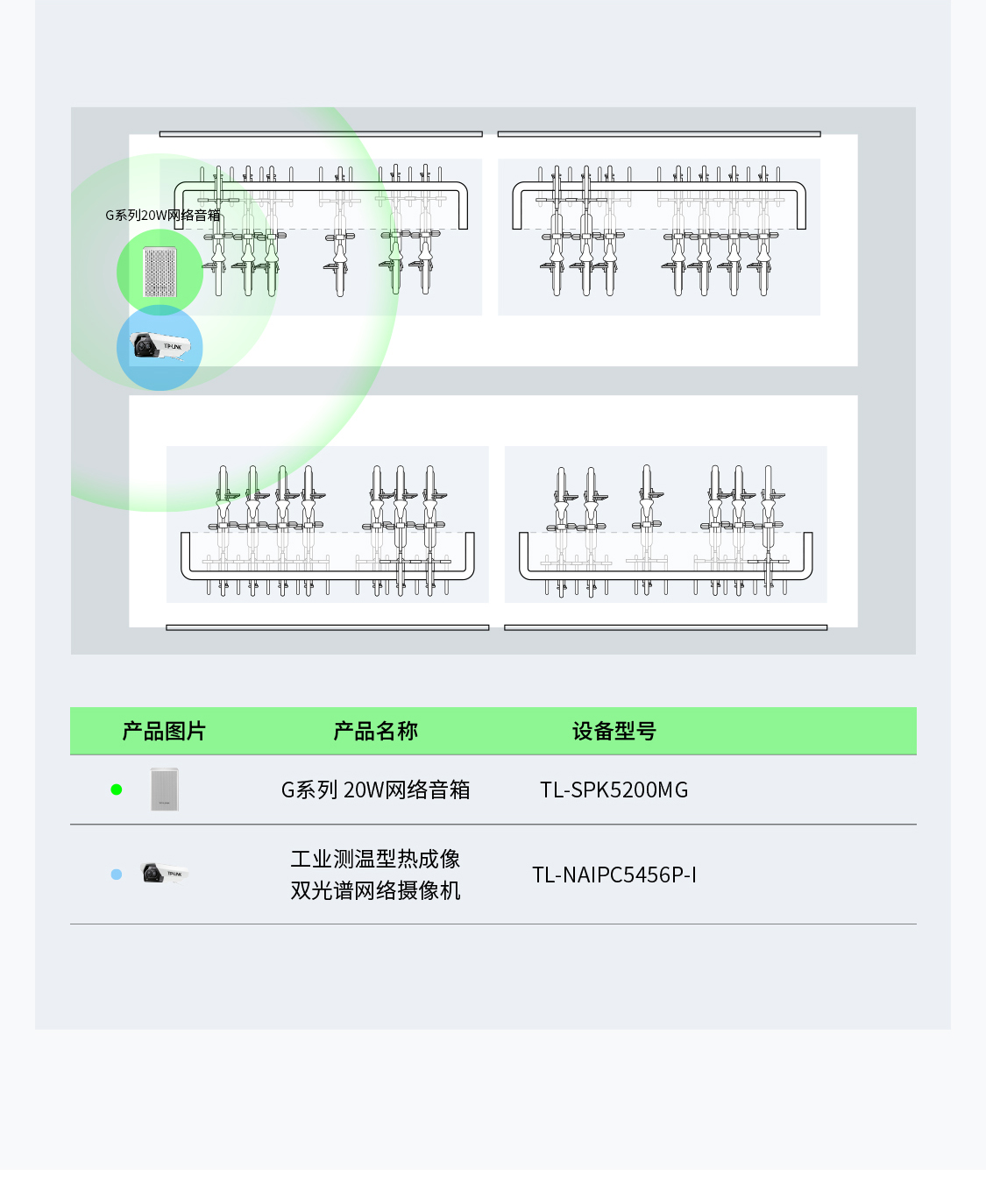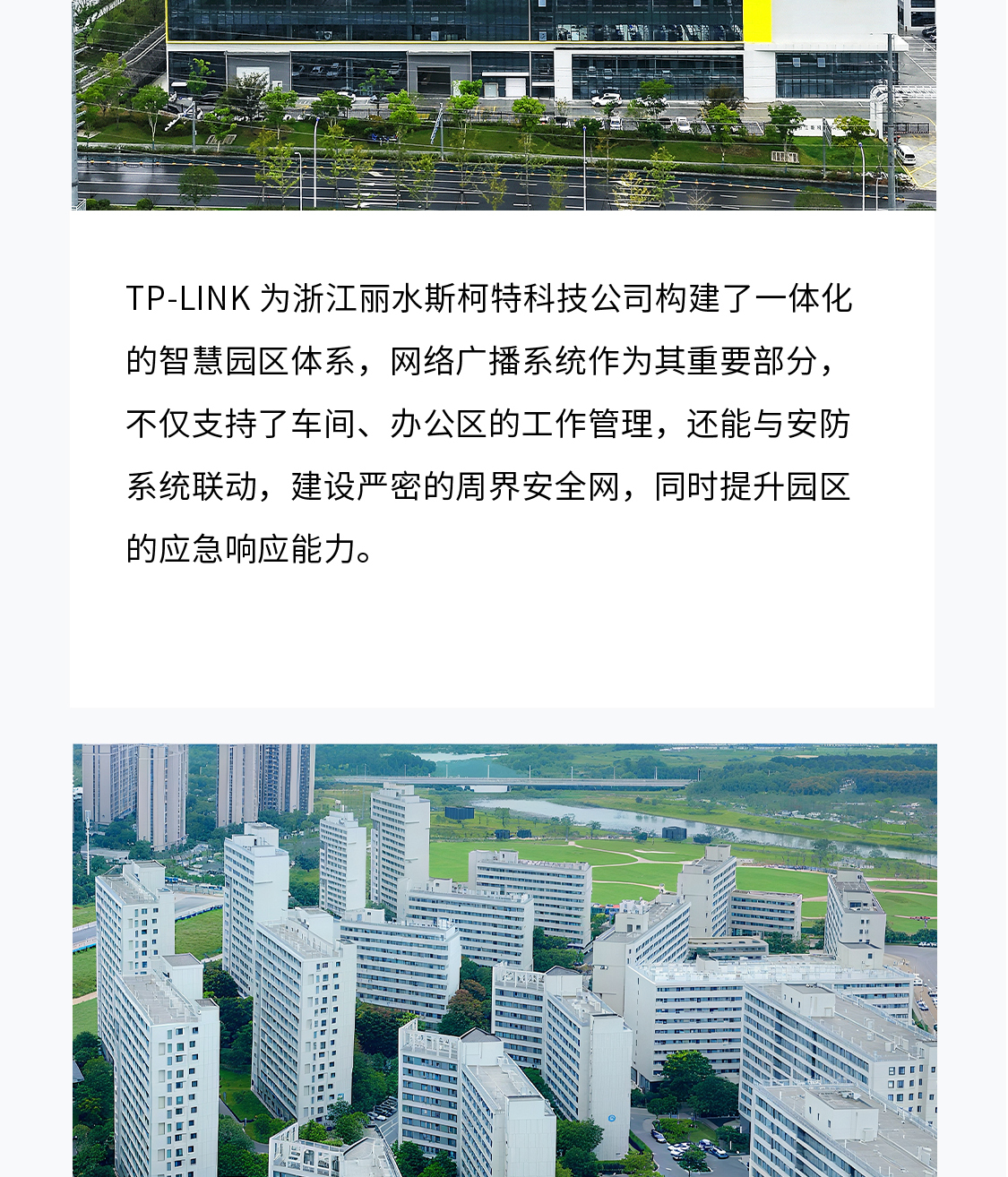 发布通知信息、执行应急指挥与安防警戒等。TP-LINK为产业园区规划了一套