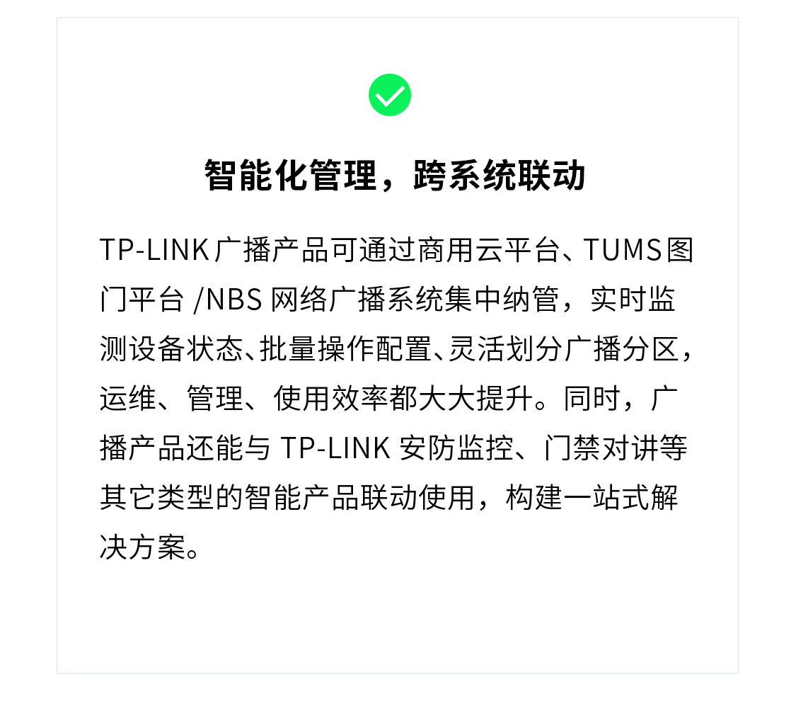 时,广播产品还能与TP-LINK安防监控、门